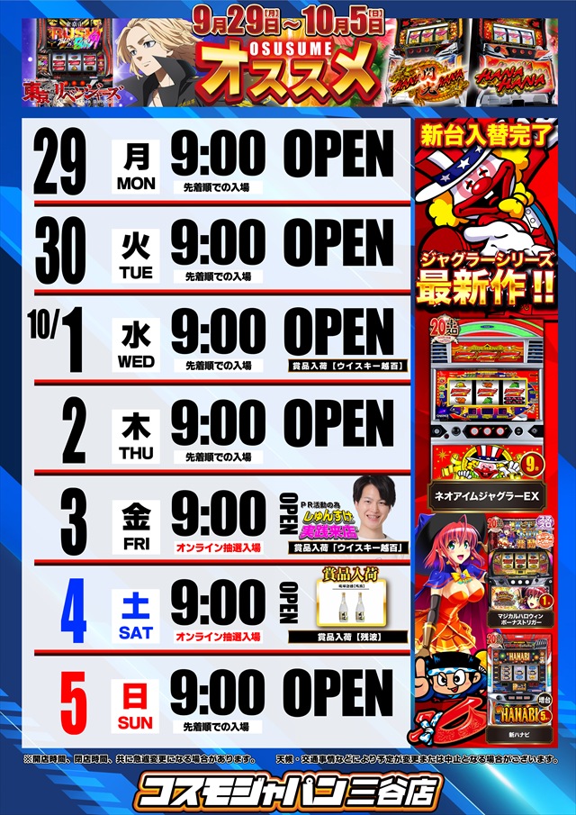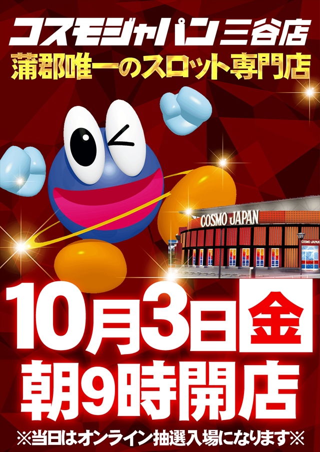 トップ > 新着情報一覧 > 10月3日(金)朝9時開店=オンライン抽選入場 10月3日(金)朝9時開店=オンライン抽選入場 2025年10月2日 三谷店の詳細を見る 一覧へ戻る 10月3日(金) 朝9時開店 オンライン抽選入場 ★☆★☆★☆★☆★☆★☆★☆★ DMMぱちタウンアプリで 無料で台データを掲載 ★☆★☆★☆★☆★☆★☆★☆★ ★☆★☆★☆★☆★☆★☆★☆★ S N S ★☆★☆★☆★☆★☆★☆★☆★ L I N E友だち募集中!! 最新情報を配信致します!! ↓ ↓ ↓ ↓ ★☆★☆★☆★☆★☆★☆★☆★ ご案内 ★☆★☆★☆★☆★☆★☆★☆★ 接続先 COSMOJAPAN_MIYA パスワード cosmo33333333 お気軽にお問合せ下さい♪ ページの先頭へ