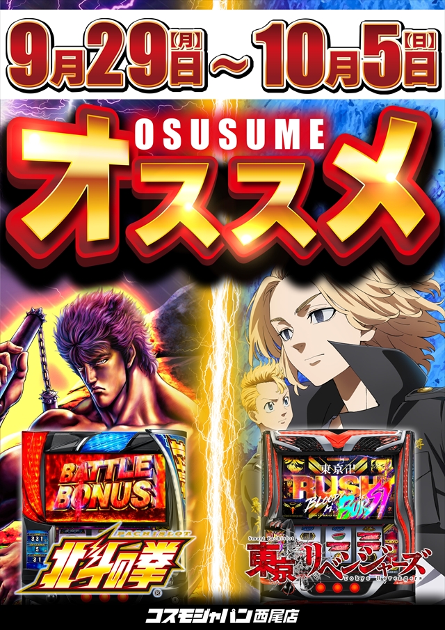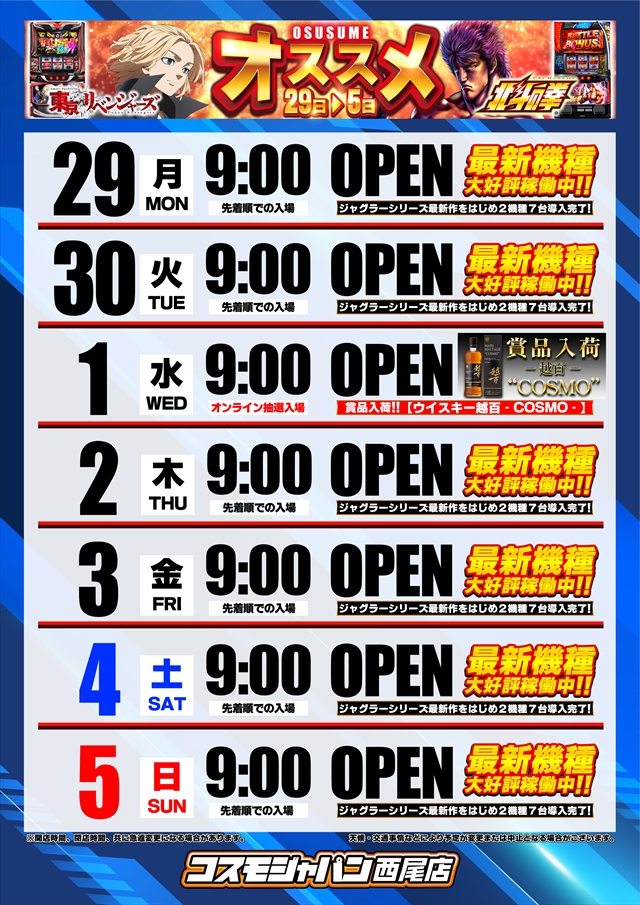 トップ > 新着情報一覧 > 10月3日(金)【最新機種好評稼働中】朝9時OPEN! 10月3日(金)【最新機種好評稼働中】朝9時OPEN! 2025年10月3日 西尾店の詳細を見る 一覧へ戻る ◆◆◆SLOT専門店◆◆◆ COSMOJAPAN 西尾店 ★本日10月3日(金)★ ★朝9時OPEN★ 【今週のオススメ】 【今月のおすすめ】 ☆★☆★☆★☆★☆★☆★☆★☆★☆★☆★☆★☆★☆★☆ ☆★☆★☆★☆★☆★☆★☆★☆★☆★☆★☆★☆★☆★☆ ☆★☆★☆★☆★☆★☆★☆★☆★☆★☆★☆★☆★☆★☆ ページの先頭へ