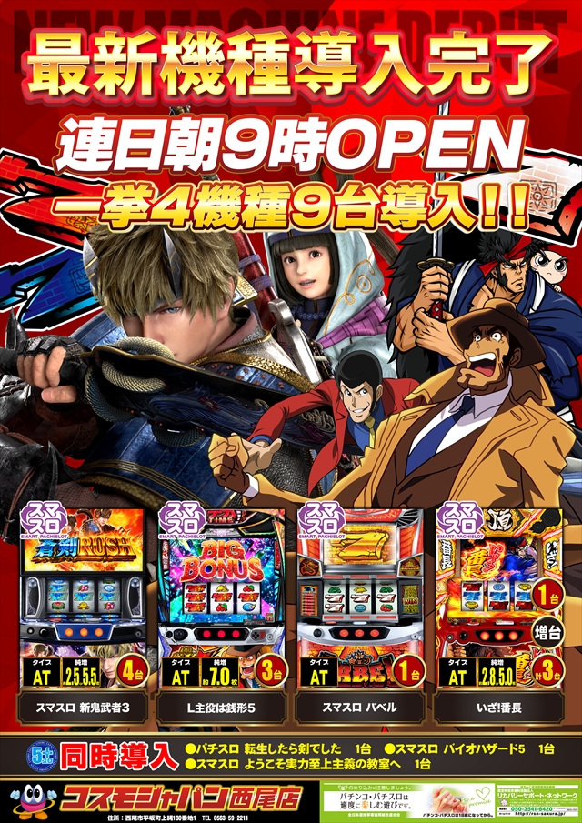 トップ > 新着情報一覧 > 10月16日(木)【最新機種好評稼働中】朝9時OPEN♪ 10月16日(木)【最新機種好評稼働中】朝9時OPEN♪ 2025年10月16日 西尾店の詳細を見る 一覧へ戻る ◆◆◆SLOT専門店◆◆◆ COSMOJAPAN 西尾店 ★本日10月16日(木)★ ★朝9時OPEN★ 【今週のオススメ】 【今月のおすすめ】 ☆★☆★☆★☆★☆★☆★☆★☆★☆★☆★☆★☆★☆★☆ ☆★☆★☆★☆★☆★☆★☆★☆★☆★☆★☆★☆★☆★☆ ☆★☆★☆★☆★☆★☆★☆★☆★☆★☆★☆★☆★☆★☆ ☆★☆★☆★☆★☆★☆★☆★☆★☆★☆★☆★☆★☆★☆ ページの先頭へ