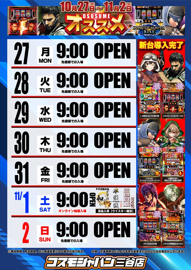 トップ > 新着情報一覧 > 10月27日(月)朝9時開店 10月27日(月)朝9時開店 2025年10月26日 三谷店の詳細を見る 一覧へ戻る 10月27日(月) 朝9時開店 ★☆★☆★☆★☆★☆★☆★☆★ DMMぱちタウンアプリで 無料で台データを掲載 ★☆★☆★☆★☆★☆★☆★☆★ ★☆★☆★☆★☆★☆★☆★☆★ S N S ★☆★☆★☆★☆★☆★☆★☆★ L I N E友だち募集中!! 最新情報を配信致します!! ↓ ↓ ↓ ↓ ★☆★☆★☆★☆★☆★☆★☆★ ご案内 ★☆★☆★☆★☆★☆★☆★☆★ 接続先 COSMOJAPAN_MIYA パスワード cosmo33333333 お気軽にお問合せ下さい♪ ページの先頭へ