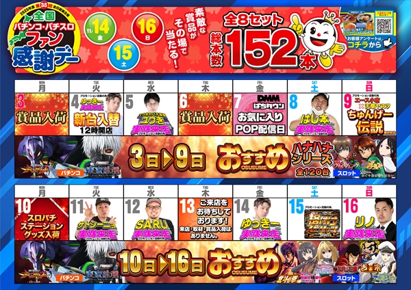 トップ > 新着情報一覧 > 11月4日(火)◆旗艦店の新台入替◆12時OPEN 11月4日(火)◆旗艦店の新台入替◆12時OPEN 2025年11月3日 大府店の詳細を見る 一覧へ戻る 11月4日(火) 12時OPEN!! ご来店お待ちしてます! ページの先頭へ