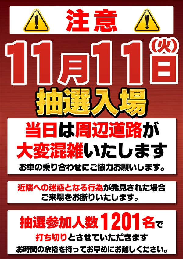 トップ > 新着情報一覧 > 11月7日(金)◆お気に入りPOP配信日◆朝9時OPEN! 11月7日(金)◆お気に入りPOP配信日◆朝9時OPEN! 2025年11月6日 大府店の詳細を見る 一覧へ戻る 11月7日(金) あさ9時OPEN!! ご来店お待ちしてます! ページの先頭へ