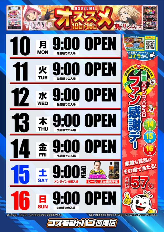 トップ > 新着情報一覧 > 11月9日(日)【最新機種好評稼働中】朝9時OPEN♪ 11月9日(日)【最新機種好評稼働中】朝9時OPEN♪ 2025年11月9日 西尾店の詳細を見る 一覧へ戻る ◆◆◆SLOT専門店◆◆◆ COSMOJAPAN 西尾店 ★本日11月9日(日)★ ★朝9時OPEN★ 【今週のオススメ】 【今月のおすすめ】 ☆★☆★☆★☆★☆★☆★☆★☆★☆★☆★☆★☆★☆★☆ ☆★☆★☆★☆★☆★☆★☆★☆★☆★☆★☆★☆★☆★☆ ☆★☆★☆★☆★☆★☆★☆★☆★☆★☆★☆★☆★☆★☆ ☆★☆★☆★☆★☆★☆★☆★☆★☆★☆★☆★☆★☆★☆ ページの先頭へ