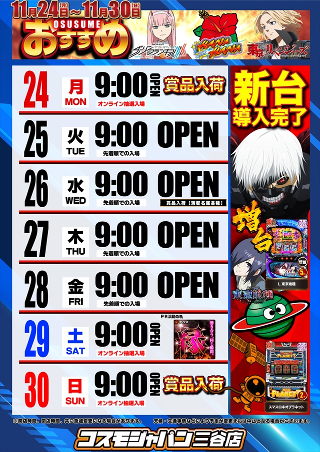 トップ > 新着情報一覧 > 11月24日(月)朝9時開店=賞品入荷【オンライン抽選入場】 11月24日(月)朝9時開店=賞品入荷【オンライン抽選入場】 2025年11月23日 三谷店の詳細を見る 一覧へ戻る 11月24日(月) 朝9時開店 オンライン抽選入場 ★☆★☆★☆★☆★☆★☆★☆★ DMMぱちタウンアプリで 無料で台データを掲載 ★☆★☆★☆★☆★☆★☆★☆★ ★☆★☆★☆★☆★☆★☆★☆★ S N S ★☆★☆★☆★☆★☆★☆★☆★ L I N E友だち募集中!! 最新情報を配信致します!! ↓ ↓ ↓ ↓ ★☆★☆★☆★☆★☆★☆★☆★ ご案内 ★☆★☆★☆★☆★☆★☆★☆★ 接続先 COSMOJAPAN_MIYA パスワード cosmo33333333 お気軽にお問合せ下さい♪ ページの先頭へ