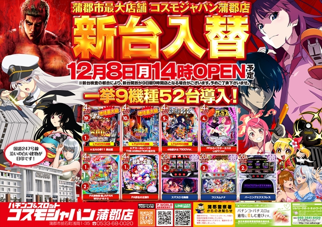トップ > 新着情報一覧 > 12月8日(月) ◆◆ 新台入替 ◆◆14時OPEN 12月8日(月) ◆◆ 新台入替 ◆◆14時OPEN 2025年12月3日 蒲郡店の詳細を見る 一覧へ戻る ページの先頭へ