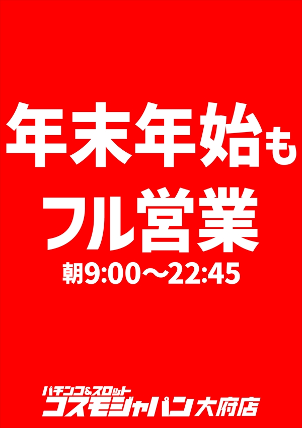 トップ > 新着情報一覧 > 1月1日(木)◆大府市NO.1設置台数◆朝9時OPEN! 1月1日(木)◆大府市NO.1設置台数◆朝9時OPEN! 2025年12月31日 大府店の詳細を見る 一覧へ戻る 1月1日(木) 朝9時OPEN!! ご来店お待ちしてます! ◆ 抽選のご案内 ◆ ページの先頭へ