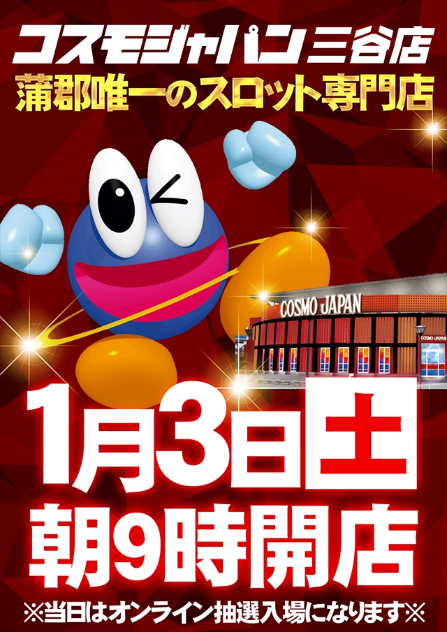 トップ > 新着情報一覧 > 1月2日(金)朝9時開店=オンライン抽選入場 1月2日(金)朝9時開店=オンライン抽選入場 2026年1月1日 三谷店の詳細を見る 一覧へ戻る 1月2日(金) 朝9時開店 オンライン抽選入場 ★☆★☆★☆★☆★☆★☆★☆★ DMMぱちタウンアプリで 無料で台データを掲載 ★☆★☆★☆★☆★☆★☆★☆★ ★☆★☆★☆★☆★☆★☆★☆★ S N S ★☆★☆★☆★☆★☆★☆★☆★ L I N E友だち募集中!! 最新情報を配信致します!! ↓ ↓ ↓ ↓ ★☆★☆★☆★☆★☆★☆★☆★ ご案内 ★☆★☆★☆★☆★☆★☆★☆★ 接続先 COSMOJAPAN_MIYA パスワード cosmo33333333 お気軽にお問合せ下さい♪ ページの先頭へ