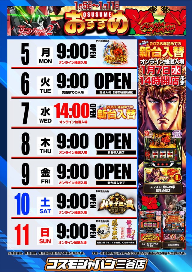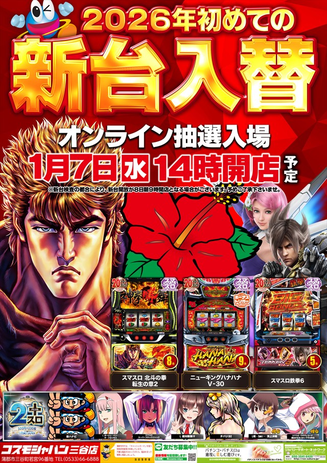 トップ > 新着情報一覧 > 1月6日(火)朝9時開店=賞品入荷 1月6日(火)朝9時開店=賞品入荷 2026年1月5日 三谷店の詳細を見る 一覧へ戻る 1月6日(火) 朝9時開店 賞品入荷 ★☆★☆★☆★☆★☆★☆★☆★ DMMぱちタウンアプリで 無料で台データを掲載 ★☆★☆★☆★☆★☆★☆★☆★ ★☆★☆★☆★☆★☆★☆★☆★ S N S ★☆★☆★☆★☆★☆★☆★☆★ L I N E友だち募集中!! 最新情報を配信致します!! ↓ ↓ ↓ ↓ ★☆★☆★☆★☆★☆★☆★☆★ ご案内 ★☆★☆★☆★☆★☆★☆★☆★ 接続先 COSMOJAPAN_MIYA パスワード cosmo33333333 お気軽にお問合せ下さい♪ ページの先頭へ