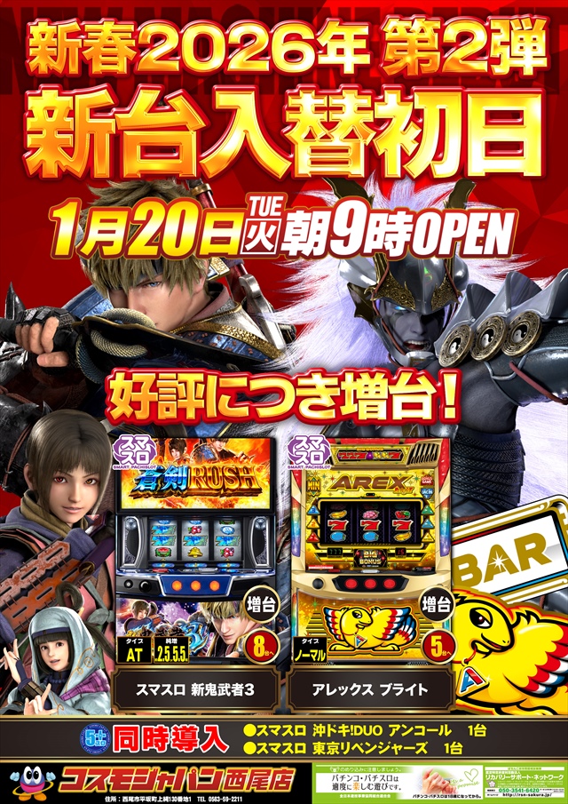 1月20日(火) 【新台入替初日】朝9時OPEN♪