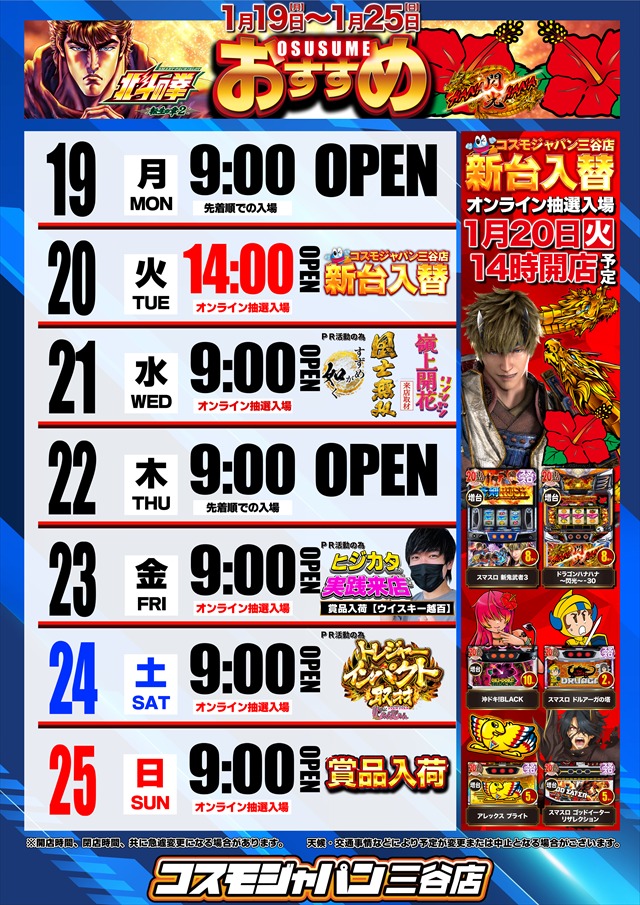 トップ > 新着情報一覧 > 1月19日(月)朝9時開店 1月19日(月)朝9時開店 2026年1月18日 三谷店の詳細を見る 一覧へ戻る 1月19日(月) 朝9時開店 ★☆★☆★☆★☆★☆★☆★☆★ DMMぱちタウンアプリで 無料で台データを掲載 ★☆★☆★☆★☆★☆★☆★☆★ ★☆★☆★☆★☆★☆★☆★☆★ S N S ★☆★☆★☆★☆★☆★☆★☆★ L I N E友だち募集中!! 最新情報を配信致します!! ↓ ↓ ↓ ↓ ★☆★☆★☆★☆★☆★☆★☆★ ご案内 ★☆★☆★☆★☆★☆★☆★☆★ 接続先 COSMOJAPAN_MIYA パスワード cosmo33333333 お気軽にお問合せ下さい♪ ページの先頭へ