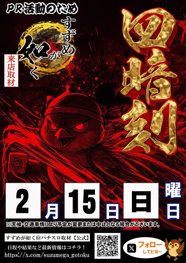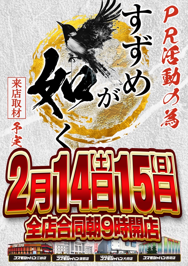 2月7日(土) 【ヒジカタ】さん実践来店!朝9時OPEN♪