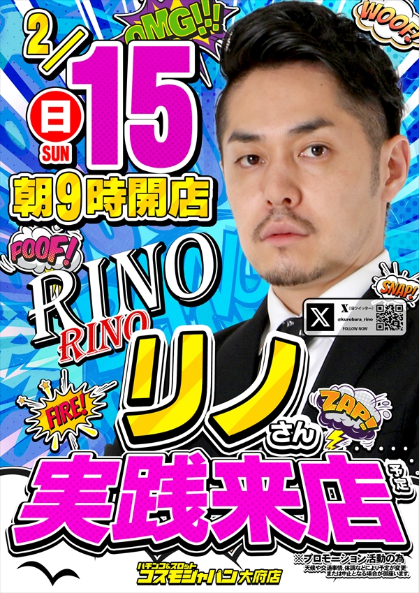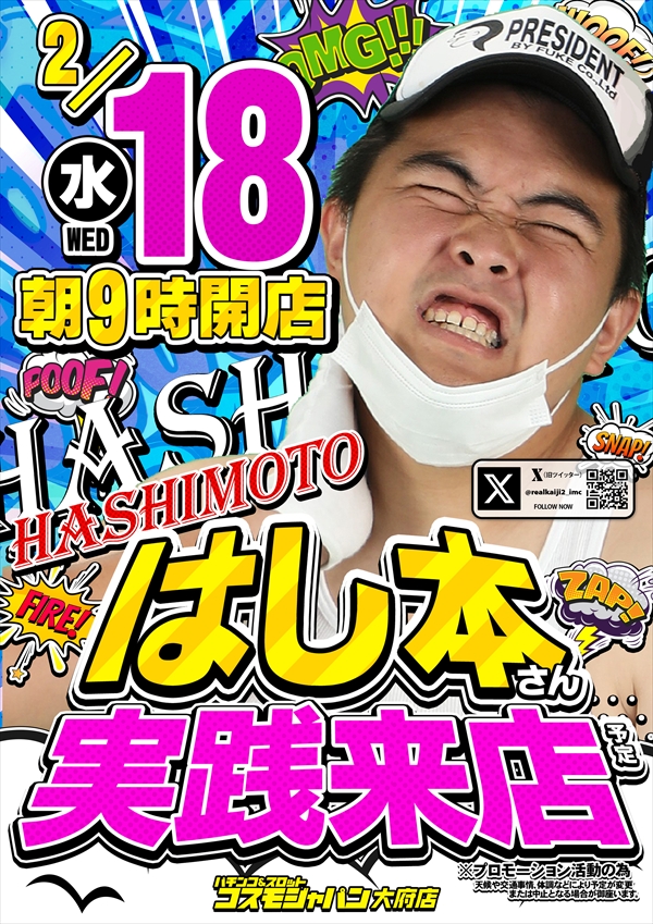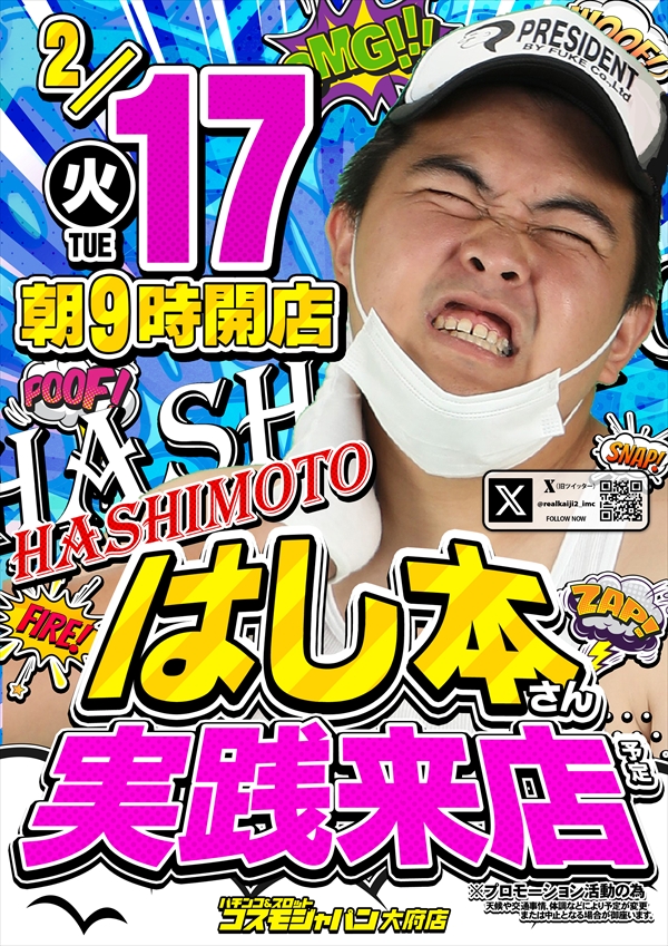 トップ > 新着情報一覧 > 2月13日(金) 【パチンコ・パチスロファン感謝デー】【ヒジカタさん実践来店】朝9時OPEN!! 2月13日(金) 【パチンコ・パチスロファン感謝デー】【ヒジカタさん実践来店】朝9時OPEN!! 2026年2月12日 大府店の詳細を見る 一覧へ戻る 2月13日(金) 朝9時OPEN!! ご来店お待ちしてます! ◆抽選のご案内◆ ページの先頭へ