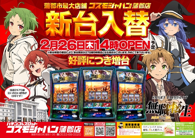 トップ > 新着情報一覧 > 2月26日(木) ◆◆ 新台入替予定 ◆◆好評につき増台 2月26日(木) ◆◆ 新台入替予定 ◆◆好評につき増台 2026年2月19日 蒲郡店の詳細を見る 一覧へ戻る ページの先頭へ