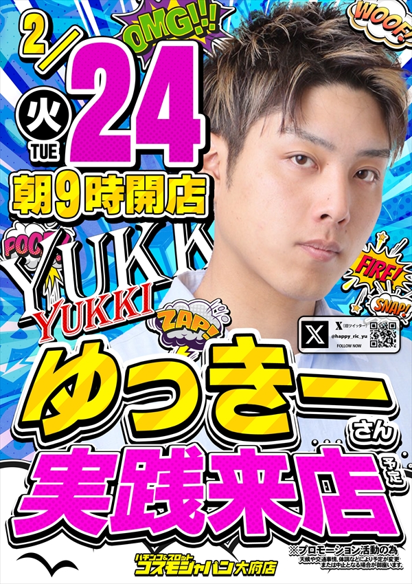 トップ > 新着情報一覧 > 2月24日(火) 【ゆっきーさん】実践来店!朝9時OPEN!! 2月24日(火) 【ゆっきーさん】実践来店!朝9時OPEN!! 2026年2月23日 大府店の詳細を見る 一覧へ戻る 2月24日(火) 朝9時OPEN!! ご来店お待ちしてます! ◆抽選のご案内◆ ページの先頭へ