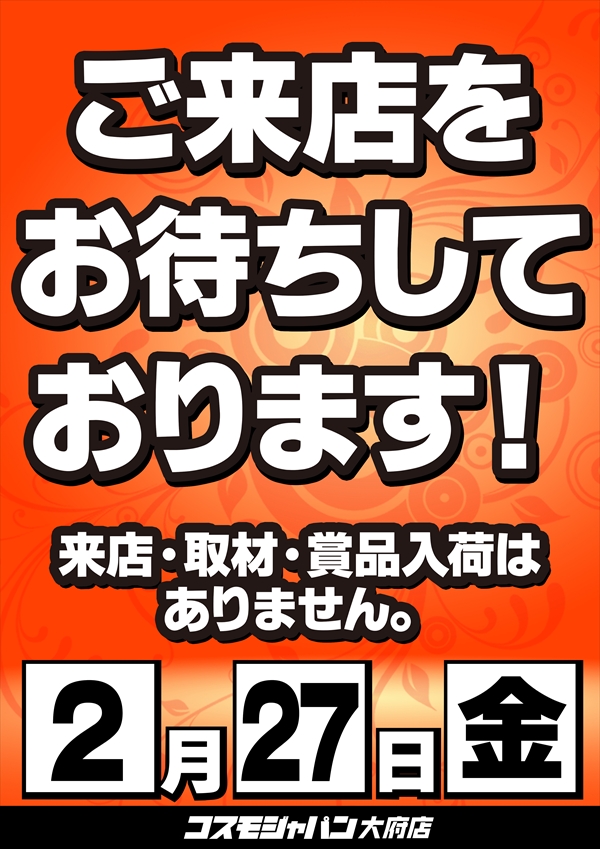 トップ > 新着情報一覧 > 2月25日(火) 【しゅんすけさん】実践来店!朝9時OPEN!! 2月25日(火) 【しゅんすけさん】実践来店!朝9時OPEN!! 2026年2月24日 大府店の詳細を見る 一覧へ戻る 2月25日(水) 朝9時OPEN!! ご来店お待ちしてます! ◆抽選のご案内◆ ページの先頭へ