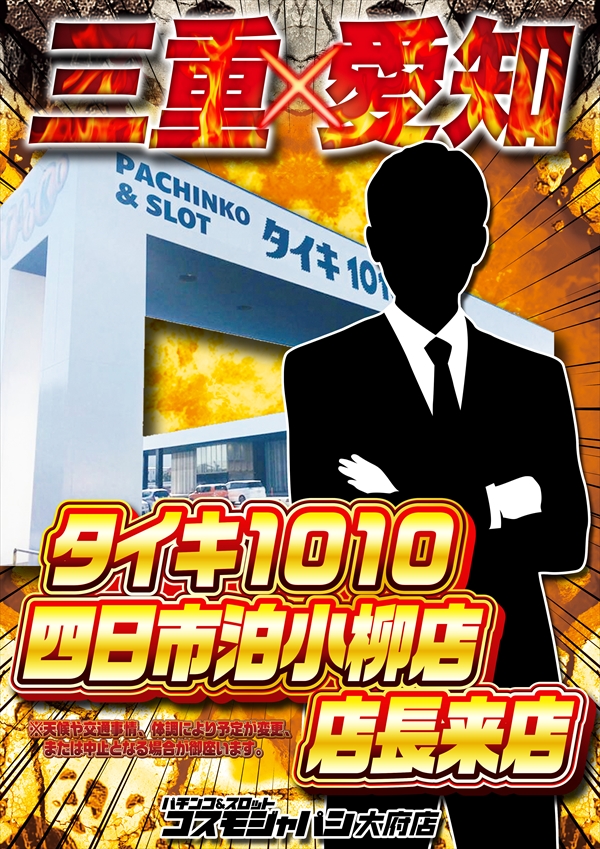 トップ > 新着情報一覧 > 3月2日(月) 【愛知×三重】タイキ1010四日市泊小柳店 店長来店! 朝9時OPEN!! 3月2日(月) 【愛知×三重】タイキ1010四日市泊小柳店 店長来店! 朝9時OPEN!! 2026年3月1日 大府店の詳細を見る 一覧へ戻る 3月2日(月) 朝9時OPEN!! ご来店お待ちしてます! ページの先頭へ
