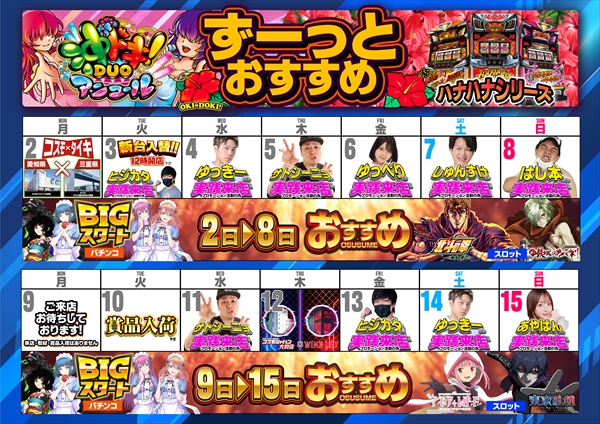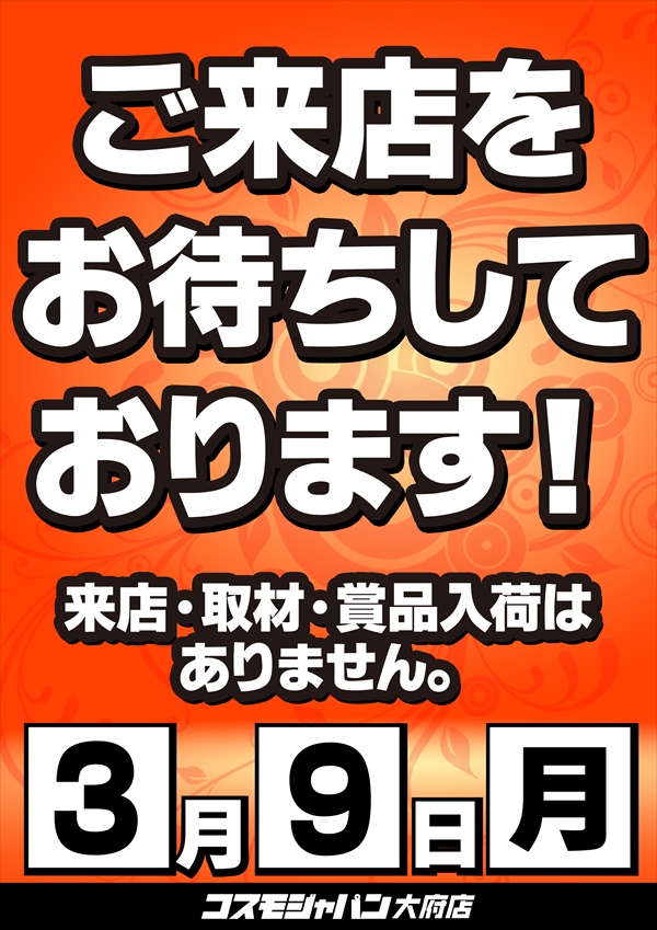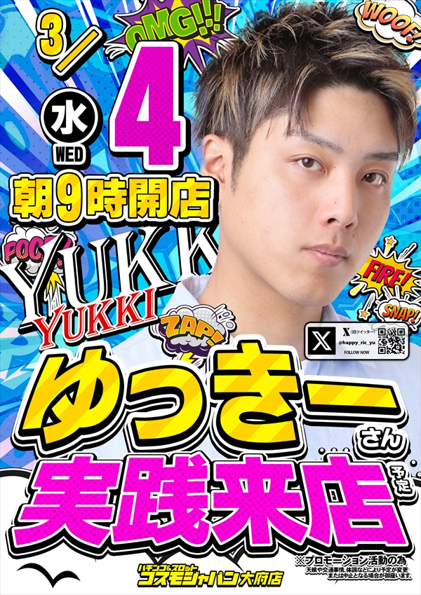 トップ > 新着情報一覧 > 3月4日(水) 【ゆっきーさん】実践来店!朝9時OPEN!! 3月4日(水) 【ゆっきーさん】実践来店!朝9時OPEN!! 2026年3月3日 大府店の詳細を見る 一覧へ戻る 3月4日(水) 朝9時OPEN!! ご来店お待ちしてます! ◆抽選のご案内◆ ページの先頭へ