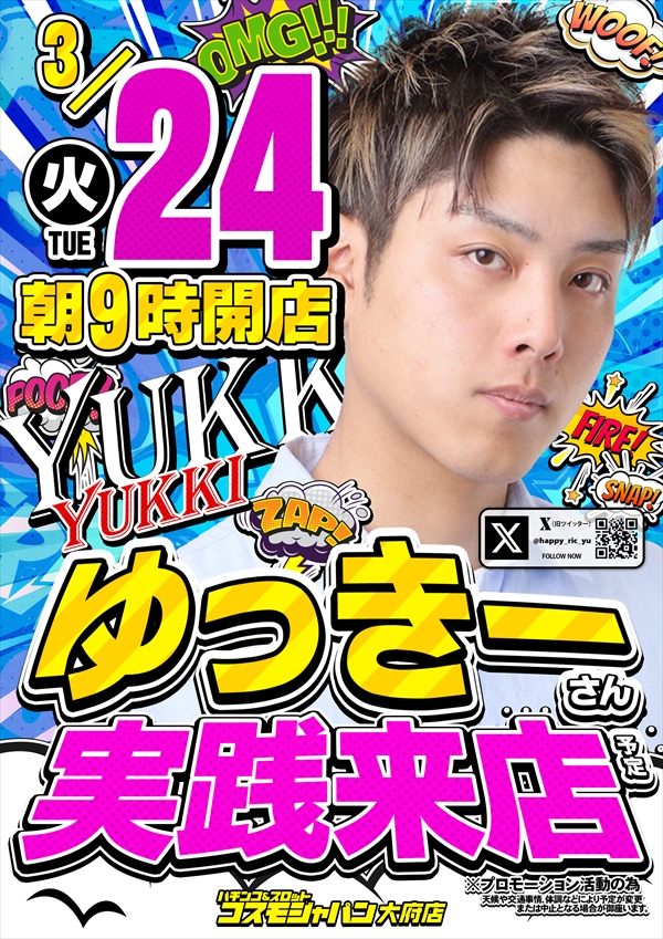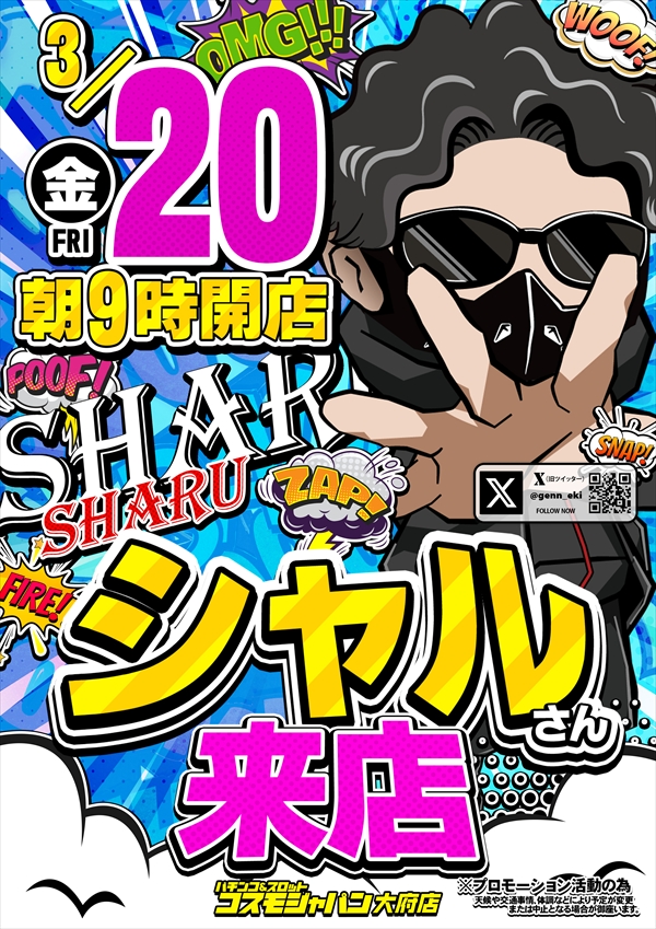トップ > 新着情報一覧 > 3月19日(木) 【しゅんすけさん】【わかはげさん】実践来店!!朝9時OPEN!! 3月19日(木) 【しゅんすけさん】【わかはげさん】実践来店!!朝9時OPEN!! 2026年3月18日 大府店の詳細を見る 一覧へ戻る 3月19日(木) 朝9時OPEN!! ご来店お待ちしてます! ◆抽選のご案内◆ ページの先頭へ