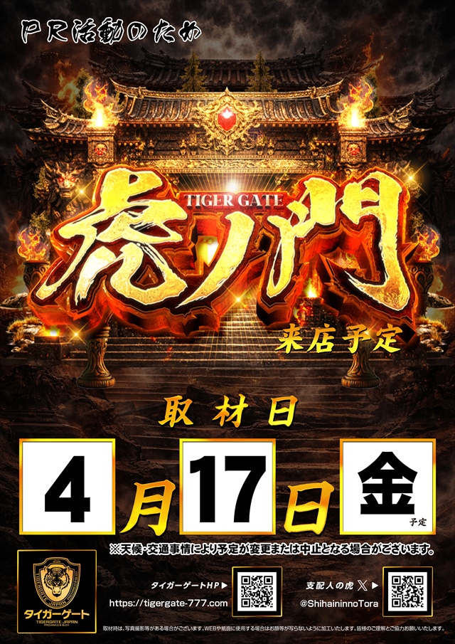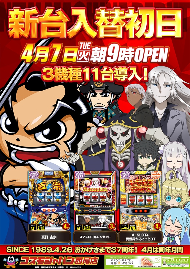 4月7日(火) 【新台入替初日】【ヒジカタ】さん実践来店!朝9時OPEN♪