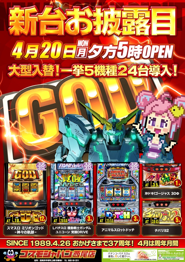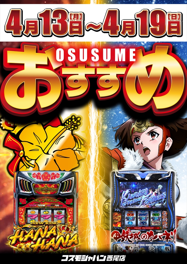 4月13日(月) 【最新機種導入完了】朝9時OPEN♪