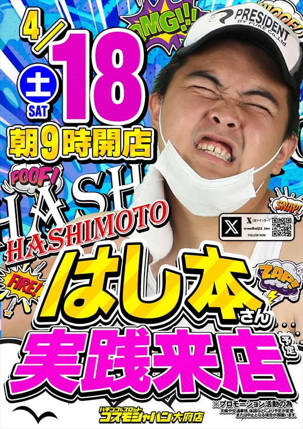 トップ > 新着情報一覧 > 4月13日(月) 【ヒジカタさん】実践来店!朝9時OPEN!! 4月13日(月) 【ヒジカタさん】実践来店!朝9時OPEN!! 2026年4月12日 大府店の詳細を見る 一覧へ戻る 4月13日(月) 朝9時OPEN!! ご来店お待ちしてます! ◆抽選のご案内◆ ページの先頭へ
